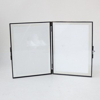 Dekorative schwarze Farbe Messing und Glas Transparent Double Open Foto rahmen