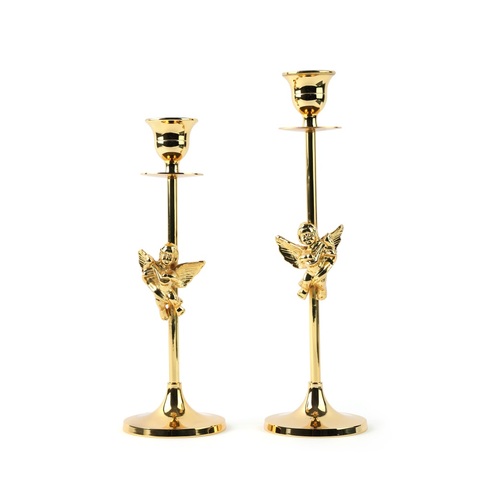 Maxery-portavelas de pilar de latón antiguo, soporte único de Ángel para Navidad, cena y boda