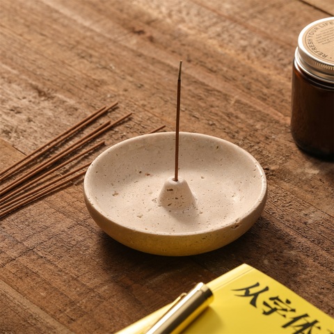 MAXERY Quemador de incienso de travertino hecho a mano-Soporte de piedra de aromaterapia redondo minimalista con textura natural (Bandeja de incienso)